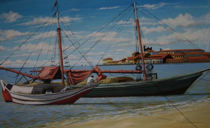 Muitos são os referenciais em torno de uma pessoa. Na imagem vislumbramos as habitações, o estilo, a conformação, a distribuição, a proximidade do mar e outros elementos. Nas embarcações temos aspectos como o objetivo, os humores do mar na região, as relações. Muitas informações surgem da ilha tropical e de seus habitantes.